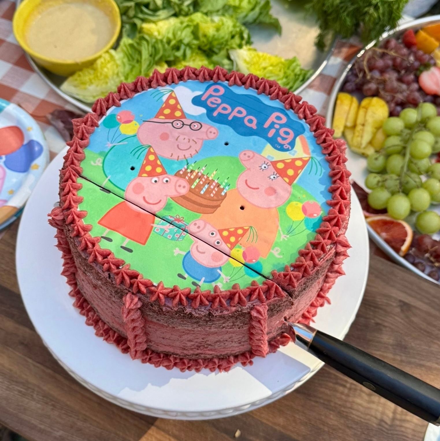 Ben’s Peppa-themed Chocolate Cake for our big 3-year-old!